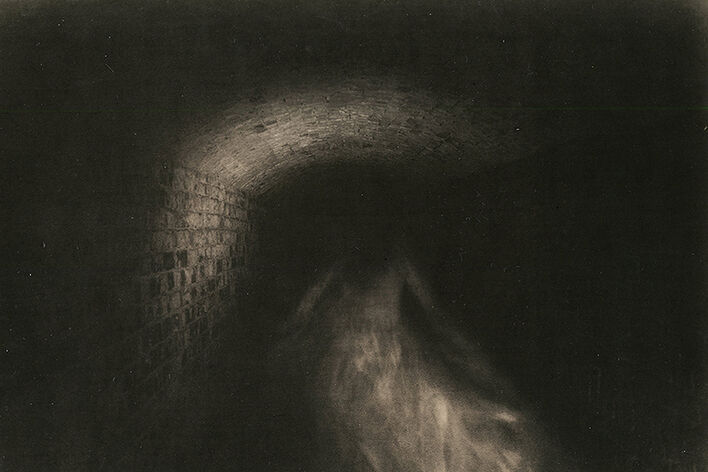 Работы серии «Палаша» напечатаны в лит-процессе. Через выбор подходящей бумаги и техники я хотела не только добиться эффекта «состаривания» (словно фотографии были сделаны в прошлом веке, когда образ девушки еще являлся посетителям замка, а после пролежали годы в сыром подвале), но и вернуть бесплотному образу видимую оболочку.