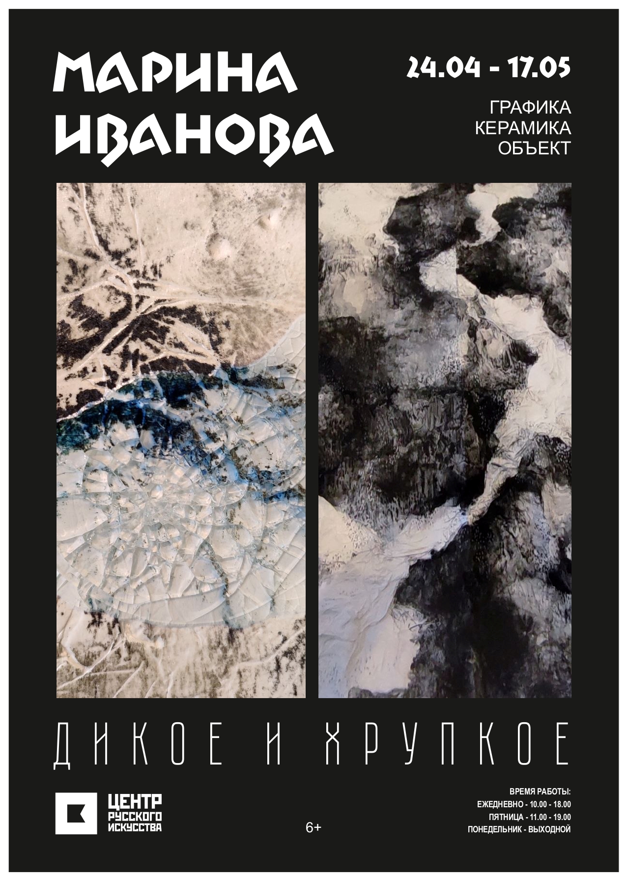 На выставке представлены графика и объекты из керамики, дерева и бумаги. Графические листы фиксируют ритм и мощь стихии, керамика и объекты воплощают тактильность и равновесие между природным и человеческим. Это пространство, где дикая мощь дополняется хрупкостью незначительных, на первый взгляд, деталей, превращаясь в ткань бесконечного ландшафта.
